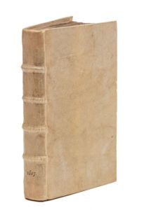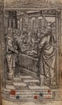 HEURES LATINES.— Hore intemerate Dei genitricis Virginis Marie secundum usum Romanum… Paris, Gilles Hardouyn, 16 septembre 1517. In‑8, 10,5 x 17 cm, 108ff. (A-O8), reliure du début du xxe siècle en vélin ivoire, dos à nerfs muet. Rares et belle heures de la Vierge Marie, imprimées sur peau de vélin à Paris. Illustré de 14 grandes figures et de 43 vignettes dans le texte, gravées sur bois. Bordures du texte historiées à fond criblé gravées sur bois. Exemplaire rubriqué sommairement à l'or et à la peinture bleue et rouge. Deux premiers feuillets salis, marge inférieure du feuillet B2 renforcée anciennement avec une pièce de parchemin, quelques petites taches, notamment aux derniers feuillets, et quelques feuillets légèrement salis.