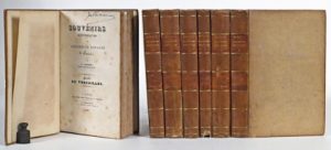 (France) - VATOUT, Jean.- Souvenirs historiques des résidences royales de France. Paris, Firmin Didot frères, 1837 [- 1845 (t. VI)]. 7 vol. in-8° (n.c., titres et gardes brunis, rousseurs passim, mention d'app. ms. sur le titre du t. I). Rel. de...