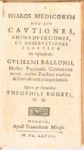 BAILLOU (Guillaume de). Pharos medicorum. Hoc est cautiones, animadversiones et observationes …