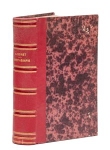 BOINET (A.-A.). Iodothérapie ou De l'emploi médico-chirurgical de l'iode et de ses composés et particulièrement des injections iodées. Paris, Victor Masson, 1855. In‑8, 13 x 21 cm, 3ff., X + 836 pp, reliure de l'époque en demi-chagrin rouge, dos orné de faux-nerfs dorés et à froid. Édition originale. Très bon état.
