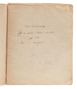 BRONGNIART (Alexandre). Cours de minéralogie fait au Muséum d'histoire naturelle en 1824. [Paris], 1824. Manuscrit in‑8, 16,5 x 20,5 cm, à l'encre brune sur papier vergé, 2ff. blancs, 1 f., 1 f. blanc, 102ff., broché. Par tradition familiale, ce cahier de cours manuscrit, daté du 15 mars au 19 avril 1824, est celui du naturaliste Isidore Geoffroy Saint-Hilaire (1805-1861) qui suivit effectivement les cours du muséum où son père était professeur et à la chaire duquel il succéda en 1841. Il serait passé par héritage à sa fille Louise Poulain d'Andecy (1831-1885). Sans couverture. Premiers et derniers feuillets salis.