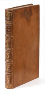 DOVER (Thomas). Legs d'un ancien médecin à sa patrie, contenant ce qu'il a recueilli lui-même pendant XLIX ans de pratique, ou Exposé des diverses maladies qui surviennent au genre humain… La Haye, Henri Scheurleer, 1734. In‑12, 9,5 x 15,5 cm, 6ff., 186pp., 2 + 21ff., reliure de l'époque en veau fauve, dos à nerfs orné de pièces d'armes dorées. Première édition en français de recettes pour soigner diverses maladies, par le médecin anglais Dover (1660-1742), dont la "poudre de Dover", contenant de l'opium. Bien complet du catalogue des ouvrages vendus chez Henri Scheurleer (42pp.), l'un des grands libraires-éditeurs européens de son époque. Bel exemplaire provenant de la famille de Rohan (pièces d'armes dorées au dos). Petite tache sombre sur le premier plat.