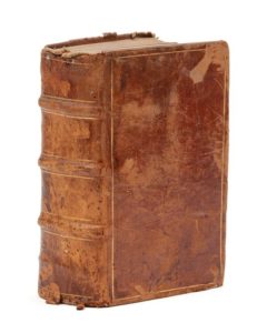 DU LAURENS (André). L'histoire anatomique en laquelle toutes les parties du corps humain sont amplement déclarées… Lyon, Simon Rigaud, 1621. In‑12, 11 x 17,5 cm, 20ff., 1452pp., 45ff., reliure de l'époque en basane fauve, encadrement doré sur les plats, dos à nerfs. Édition lyonnaise d'un grand classique paru en latin en 1600. Traduction française de François Sizé. Illustré d'un beau portrait de l'auteur gravé par Karl Audran (1594-1674) pour cette édition. Du Laurens (1558-1609) fut premier médecin de Henri IV. Émouvant exemplaire de deux chirurgiens contemporains, Martin père (1623) et fils (1632), avec leurs signatures sur le titre et la garde. Mouillures. Reliure frottée et tachée, coiffes et coins usés. Inventaire du fonds français. Graveurs du xviie siècle. Tome 1. Karl Audran, n° 246.