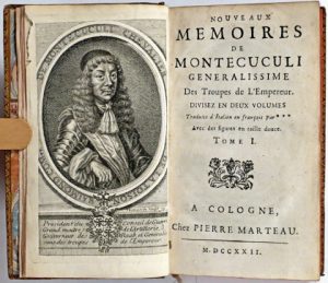 (Militaria) - Ens. 2 ouvr. in-12° - MONTECUCCOLI, Raimondo.- Nouveaux mémoires [...]. Cologne, Pierre Marteau, 1722. 2 tomes à pagination continue en 1 vol. in-12° : front.-1/198, [2]-199/441-[17] pp.; 3 h.-t. (pet. rouss., pet. taches, claire...