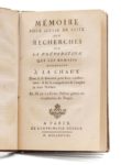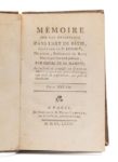 LORIOT (Antoine-Joseph). Mémoire sur une découverte dans l'art de bâtir… La méthode de composer un ciment ou mortier propre à une infinité d'ouvrages, tant pour la construction, que pour la décoration. Paris, Imprimerie de Michel Lambert, 1774. In‑8, 12,5 x 19,5 cm, 54pp., 1 f., reliure du xixe siècle en demi-basane brune, dos orné de faux-nerfs dorés. Édition originale de cet important ouvrage sur le ciment pour les constructions. L'auteur décrit sa découverte d'un ciment hydraulique d'une très grande résistance, qui fut utilisé pour les bassins des beaux jardins de Ménars (Loir-et-Cher), la propriété du marquis de Marigny, surintendant des bâtiments du roi, et frère de la marquise de Pompadour. L'ébéniste et mécanicien franc-comtois Loriot (1716-1782) travailla également à l'orangerie de Versailles. Bon état. Noms à l'encre et au crayon Hippolyte de Fontainieu, 1808. Dos entièrement épidermé. Reliés à la suite : Julien Pierre de LA FAYE. Recherches sur la préparation que les Romains donnoient à la chaux… — Mémoire pour servir de suite aux Recherches… Paris, Imprimerie royale, 1777 & 1778. VI + 84 + XIIpp. & VIII + 110 + XVIIIpp., 1 f. Éditions originales. Bien complet du feuillet imprimé après la parution de l'ouvrage, concernant la composition « d'un fragment… détaché… de l'une des pierres du parement de la grande pyramide » du Caire. La Faye, seigneur de Rocquencourt (1722-1794), était trésorier général des gratifications des officiers des troupes depuis 1745 et contrôleur ordinaire des guerres.