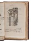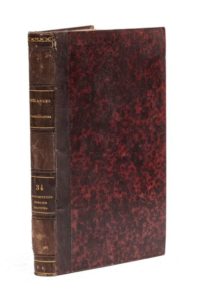 Mélanges d'agriculture. Réunion de 10 brochures en un vol. in‑8, 15 x 24 cm, reliure du temps en demi-basane aubergine, dos orné de faux-nerfs à froid et de filets dorés. Intéressant ensemble de documents sur la mécanisation agricole. Illustré de nombreux croquis. Chiffre de tomaison doré au dos et chiffre F. G. doré en queue. Petits trous de ver aux mors. Détail : • Catalogue des instruments d'agriculture de Ch. de Meixmoron de Dombasle et N. Noel… Nancy, veuve Raybois, 1864. 20pp. Croquis gravés sur bois. (2 exemplaires). • Brevet d'invention… de l'arrache-éteule ou déchaumeur de T. Cousinéry, de Marseille. [Aix-en-Provence, typographie de Martin], vers 1860. 16pp., 2ff., 2pl. lithographiées. • SINETY. Description d'une nouvelle charrue. Aix-en-Provence, Gd Mouret, 1820. 1 f., 32pp., 1pl. repliée gravée. Envoi autographe de l'auteur à M. Bourdillon en haut du titre. Feuillets non coupés. • BARTHÉLEMY-LAPOMMERAYE. Rapport sur le fouloir mécanique et l'appareil à fermentation vinaire, à vase clos, de M. Leroy… [Marseille, typographie Barlatier-Feissat et Demonchy], 1847. 20pp. Tiré à part des Annales provençales d'agriculture. • Notice sur le ciment de la Méditerranée, ancien ciment de la Valentine, ses avantages et ses emplois… Désiré Michel et cie… Marseille, Imprimerie de Jules Barile, 1862. 1 f., 1 f. blanc, 28pp. • Ciment de Tournon (près La Valentine), commune d'Auriol (B.-du-Rhône). M. Négrel, fabricant… Aix-en-Provence, Typographie Achille Makaire, 1862. 8pp. Couvertures conservées. • Notice sur les tuyaux à joint-parallèle, système Dussard. Marseille, Typographie Arnaud, Cayet et cie, 1867. 16pp., 1pl. repliée lithographiée. • Palissages pour les arbres et la vigne, raidisseurs. Grilles et clôtures. Cordes en fil de fer. Louet frères… Issoudun, Imprimerie A. Gaignault, 1873. 2ff., 120pp., 1 f., 1 f. blanc. • GASPARIN. Considérations sur les machines. Lyon, Imprimerie de J. M. Barret, 1834. 2ff., 56pp. • Turbines, roues hydrauliques, machines à vapeur, moulins à blé, papeteries, élévations d'eau, etc. Brault & Bethouart… à Chartres… [Chartres, Imprimerie de Garnier, 1867]. 12pp. Relié avec une dizaine de prospectus (calorifères, vitraux, sacs pour raisins, moissonneuses et faucheuses, etc.), 3 catalogues (instruments d'agriculture, mobilier et services de table), des extraits de presse, etc.