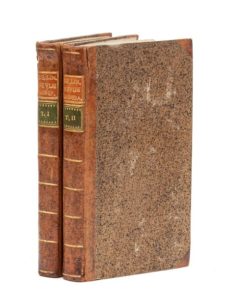PULTENEY (Richard). Revue générale des écrits de Linné. Ouvrage dans lequel on trouve les anecdotes les plus intéressantes de sa vie privée, un abrégé de ses systêmes et de ses ouvrages, un extrait de ses aménités académiques… Paris, Buisson, 1789. 2 vol. in‑8, 12 x 20 cm, 2ff., VI + 386pp. & 2ff., 400pp., 1 tableau replié, reliure de l'époque en demi-veau fauve moucheté à coins, dos ornés de faux-nerfs dorés. Première édition française de cette bio-bibliographie de Linné, traduite et annotée par L. A. Millin de Grandmaison. Petites fentes aux mors avec manque aux dos et une coiffe arrachée.