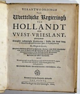 (Pays-Bas) - GROOT, Hugo de.- Verantwoordingh van de wettelijcke regieringh van Hollandt ende West-Vrieslant[...]. Parys, z.n., 1622. In-4° : 15-[1 bl.]-287-[3]-44 pp. (sporadische vlekjes, kleine marginale inscheuring in pp. 93-96, enkele...