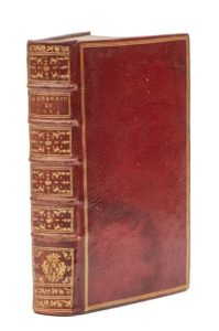 Almanach royal, année M. DCC. LXXIX… Paris, Le Breton, 1779. In‑8, 13 x 20,5 cm, reliure de l'époque en maroquin rouge, triple filet doré en encadrement sur les plats, dos à nerfs orné de motifs dorés, armes dorées en queue, filet doré aux coupes, roulette intérieure dorée, tranches dorées. Bel exemplaire aux armes de Charles-Gilbert Morel de Vindé (1759-1842) alors conseiller au parlement de Paris, qui fut élu à l'Académie des sciences sous la Restauration (OHR 2152, qui cite cet exemplaire). De la bibliothèque Nepveu. Taches sur les plats.
