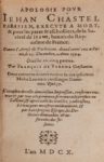[BOUCHER (Jean)]. Apologie pour Jehan Chastel parisien, exécuté à mort, & pour les pères & …
