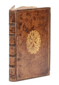 [DU HAMEAU (Pierre)]. La vie de Marguerite de Lorraine, duchesse d'Alençon, grande ayeule du roy Louys le Juste… Paris, Sébastien Cramoisy, [20 décembre 1627] 1628. In‑8, 10,5 x 17 cm, 4ff., 214pp., reliure du xixe siècle, plats et dos du temps en veau fauve remontés, double filet doré en encadrement et armes dorées au centre des plats, dos à nerfs orné de caissons dorés. Édition originale. Marque de l'imprimeur sur le titre. Reliure aux armes de Louis d'Estampes de Valencay (1589-1651), évêque de Chartres puis archevêque de Reims (OHR 1663, proche du fer 3). De la bibliothèque Nepveu. Mouillures. Plats et dos de la reliure d'origine remontés sur une reliure du xixe siècle.