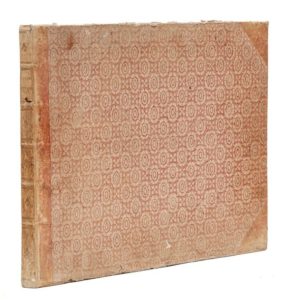 Imagines Veteris ac Novi Testamenti a Raphaële sanctio urbinate in Vaticani palatii xystis mira picturae elegantia expressae Jo.-Jacobi de Rubeis cura ac sumptibus, delineatae, incisae ac typis editae. [Rome, Giovanni Giacomo De Rossi, 1675]. In‑folio oblong, 48,5 x 38 cm, titre-frontispice et 2 + 52pl., reliure du temps en demi-vélin rose à coins, dos à nerfs orné de motifs dorés. Second tiragede cette belle suite gravée composée d'un titre-frontispice avec le portrait et la dédicace à la reine Christine de Suède, d'un portrait de Raphaël par Carlo Maretta d'après Petrus Aquila, d'un autre du même dessiné et gravé par Cesare Fantectus et de 32 scènes bibliques des célèbres loges du Vatican, d'après Aquila et Fantectus. Beau tirage, grand de marges. Mors intérieur fendu, feuillets légèrement déboîtés. Dos passé, coins et coupes frottés.