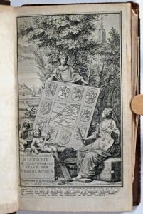Eerste uitgave van de vertaling van het 10de deel uit Salmons (1679-1767) uitgebreide reeks historisch-topografische landbeschrijvingen getiteld "Modern history or present state of all Nations" verschenen in Londen vanaf 1725. Rijkelijk geïllustreerd met een gegraveerde titel en een portret in medaillon van Maria-Elisabeth, gouvernante der Oostenrijkse Nederlanden (beiden door J.C. Philips), 4 uitvouwbare kaarten, 7 (van 8) uitvouwbare stadsplattegronden (Brussel, Antwerpen, Brugge, Gent, Oostende, Ieper en Rijsel) en 3 panoramische zichten (Charleroi, Gelderen en Scherpenheuvel). Behandelt onder meer de topografie van de Nederlanden, het beleid en economische onderwerpen (o.a. de op- en ondergang van de Oostendse Maatschappij en de handel in Oost-Indië). De zes stukken hebben ieder een typografische titel; de drie eerste stukken dateren van 1737. # Tiele 1033. ^ Édition originale de la traduction de ce tome consacré aux Pays-Bas faisant partie de la grande collection d'ouvrages historico-topographiques de Salmon. Illustré d'un titre gravé, du portrait en médaillon de Marie-Élisabeth, 4 cartes géographiques, 7 (sur 8) plans de villes et 3 vues panoramiques. Plein veau de l'ép. (plan de Tournai manquant, pet. défauts).