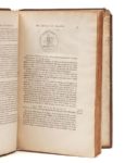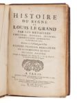 MÉNESTRIER (Claude-François). Histoire du règne de Louis le Grand par les médailles, emblèmes, devises, jettons, inscriptions, armoiries & autres monumens publics… Paris, Robert Pepie, J. B. Nolin, 1693. In‑folio, 24,5 x 37 cm, 1 f., 4 + 82pp. (mal chiffrées 80), 4ff., frontispice et 58pl. dont 2 repliées + 33 + 1pl., reliure de l'époque en veau brun moucheté, dos à nerfs orné de fleurs de lys dorées. Seconde édition, illustrée d'un portrait de l'auteur, gravé en frontispice par J. B. Nolin d'après P. Simon, de 92 planches et de vignettes dans le texte, gravées. Feuillet de dédicace gravé. Quelques légères mouillures anciennes. Reliure usée : coiffe supérieure arrachée, coins frottés, accident au dos.