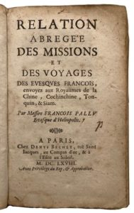 PALLU (François). Relation abrégée des missions et des voyages des évesques françois envoyez …