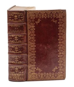 RELIURE.— Heures imprimées sur l'ordre de monseigneur le cardinal de Noailles… Nouvelle édition. Paris, Jean-Th. Herissant, Claude Herissant, 1765. In‑12, 9,5 x 16,5 cm, 12ff., 540 + 346pp., 1 f., frontispice, reliure de l'époque en maroquin rouge, large dentelle dorée en encadrement avec fleurons d'angle sur les plats, dos à nerfs orné de motifs dorés, filet doré aux coupes, roulette intérieure dorée, doublure et gardes de papier d'Augsbourg, tranches dorées. Nouvelle édition des heures des Noailles dans une charmante reliure en maroquin rouge à dentelle. Elle est illustrée d'un frontispice gravé. Becquet à l'adresse de Louis-Guillaume de Hansy et à la date de 1767. Des bibliothèques Lambert-Lesage (1863 ; ex-libris manuscrit) et Nepveu. Petite correction manuscrite sur le titre. Manque le dernier feuillet de garde. Coins frottés.
