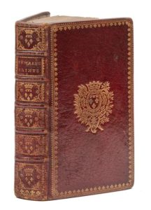 RELIURE AUX ARMES.— L'office de la quinzaine de Pasque, latin‑françois, à l'usage de Rome et de Paris, pour la maison de Mgr le duc d'Orléans… Paris, D'Houry, 1745 [1741]. In‑12, 10 x 16,5 cm, 48 + 600pp., reliure de l'époque en maroquin rouge, dentelle dorée en encadrement et armes dorées au centre des plats, dos à nerfs orné de motifs et de pièces d'armes dorés, tranches dorées. Impression de 1741, avec titre de relais à la date de 1745. Bel exemplaire aux armes de Louis, duc d'Orléans (1703-1752), au centre des plats et au dos (OHR 2572, fer 2 attribué à Louis-Philippe, duc d'Orléans (1725-1785), qui le reprit à la mort de son père). Mors très légèrement décolorés.