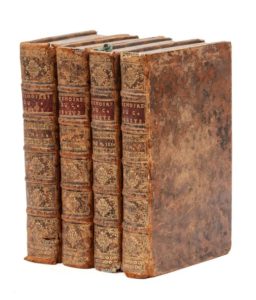 RETZ (cardinal de). Mémoires… Amsterdam, Jean-Frédéric Bernard, 1717. 4 vol. in‑12, 9,5 x 16 cm, 2ff., 688pp. (mal chiffrées 650), frontispice & 1 f., 596pp. & 1 f., 558pp. & 1 f., 550pp., reliure de l'époque en veau fauve, dos à nerfs ornés de motifs dorés. Illustré d'un portrait de l'auteur gravé en frontispice. Ex-libris du xviiie siècle. Cachet humide du contrôleur des douanes de Varsovie (vers 1970). Reliure frottée, coiffes et coins usés.