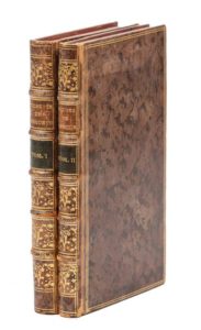 [VILLEFORE (Jean-François de)]. La vie de madame la duchesse de Longueville. [Paris], 1738. 2 vol. in‑12, 9,5 x 16 cm, 1 f., XII + 240pp. & 1 f., 188pp., reliure du xixe siècle en veau brun marbré, double encadrement de filets dorés, dos à nerfs ornés de motifs dorés. Édition originale posthume de la première biographie d'Anne-Geneviève de Bourbon, duchesse de Longueville (1619-1679), sœur du Grand Condé et figure de la Fronde, qui fut la maîtresse du duc de la Rochefoucauld, l'auteur des Maximes. Bon état. Deux portraits gravés du xixe siècle (duchesse de Longueville, La Rochefoucauld) ont été montés en frontispices.
