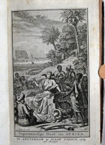 (Afrique) - [SALMON, Thomas].- Hedendaagsche historie of tegenwoordige staat van Afrika [...]. Amsterdam, Isaak Tirion, 1763. In-8° : gegrav. titel-[4]-810-[17] pp.; 5 platen (sporadische vlekjes). Eigentijdse band : halfleder, gesprenkelde platten,...