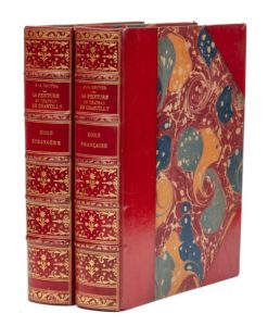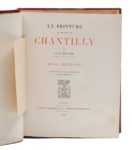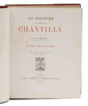 GRUYER (François-Anatole). La peinture au château de Chantilly. École française. École étrangère. Paris, Plon, Nourrit & cie, 1898-1896. 2 vol. in‑4, 22,5 x 27,5 cm, 4ff., 502pp., 1 f., 40pl. & 1 f. blanc, 3ff., IV + 378pp., 1 f., 40pl., reliure de l'époque, signée Desbled, en demi-veau cerise à coins, dos à nerfs ornés de motifs dorés, têtes dorées, couvertures conservées. Édition originale. Important catalogue des peintures de la collection du duc d'Aumale à Chantilly. Illustré de 80 planches en héliogravure. Bel exemplaire.