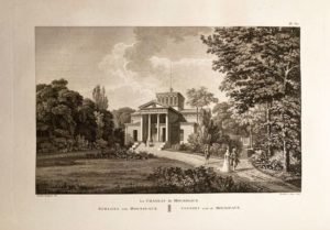 LABORDE (Alexandre de). Description des nouveaux jardins de la France et de ses anciens châteaux, mêlée d'observations sur la vie de la campagne et la composition des jardins. Paris, Imprimerie de Delance, 1808. In‑folio, 37 x 50 cm, 3ff., 226pp., 89pl. (chiffrées 122) + 3pl., 2 plans, reliure moderne en demi-chagrin chocolat, dos orné de faux-nerfs à froid. Édition originale de cet ouvrage célèbre. L'illustration, gravée d'après Constant Bourgeois (1767-1841), un élève de David, comprend un titre-frontispice, 122 vues (sur 89 planches), 2 plans, 8 gravures à système finement découpées (sur 2 planches), 22 figures techniques (sur une planche) et une vignette sur le titre imprimé. Importante description des jardins de Malmaison, Morfontaine, Ermenonville, Trianon, Maupertuis, Le Raincy, Jouy, Betz (à la princesse de Monaco), Belœil, etc. Traductions en anglais et en allemand sous le texte français. Bon exemplaire, à toutes marges, malgré une mouillure aux 70 premières pages. Rousseurs. Piqûres marginales. Vicaire IV, 745-746.