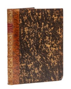 LE GLAY (A.). Recherches sur l'église métropolitaine de Cambrai. Cambrai, chez l'auteur & Paris, Firmin Didot, Adrien Le Clère, Treuttel et Wurtz, 1825. In‑4, 21 x 27 cm, X + 236pp., frontispice et 11pl., dont une repliée, reliure de la fin du xixe siècle en demi-veau blond raciné, dos à nerfs orné de motifs dorés. Édition originale de l'histoire de la cathédrale Notre-Dame de Cambrai, avec l'étude de son architecture, des œuvres qu'elle contenait, de son trésor et des pièces archéologiques retrouvées. Cet édifice gothique a été victime du vandalisme révolutionnaire et entièrement démoli. Illustré d'un frontispice et de 11 planches, lithographiés par Engelmann d'après Ad. Rogé. De la bibliothèque de l'historien Albert Babeau (1835-1914), membre de l'Institut, spécialiste de la société sous l'Ancien régime (chiffre doré au dos). Rousseurs. Coiffe supérieure arrachée. Un coin cassé.