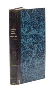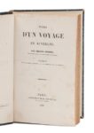 MÉRIMÉE (Prosper). Notes d'un voyage en Auvergne. Paris, H. Fournier, 1838. In‑8, 12,5 x 20 cm, 2ff., 414pp., une planche repliée, reliure de l'époque en demi-veau bleu, dos orné de faux-nerfs dorés. Édition originale de la description des principaux monuments civils et religieux d'Auvergne mais également du Berry, du Limousin, du Bourbonnais et du Rouergue, rédigée à la suite du voyage de Mérimée comme inspecteur général des monuments historiques. Illustré d'une planche lithographiée : plan, coupe et vue de l'abbatiale Sainte-Foy de Conques (Aveyron), avant sa restauration. Bon état. Rousseurs. Légère mouillure en marge inférieure. Petite fente à un mors.