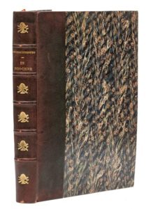MONTPENSIER (duc de). En Indochine. Mes chasses, mes voyages. Paris, Lafitte, 1912. In‑4, 20 x 28,5 cm, 1 f., X + 178pp., 2ff., frontispice et 76pl., reliure de l'époque en demi-chagrin vert bouteille, dos à nerfs orné de motifs dorés, couvertures conservées, tête dorée, non rogné. Édition originale. Importants récits de voyage et de chasse en Indochine par Ferdinand d'Orléans, duc de Montpensier (1884-1924), arrière-petit-fils de Louis-Philippe. Préface de Jean Richepin. Illustré de 136 photos en noir montées sur 76 planches. Portrait de l'auteur en frontispice. Un des 300 exemplaires sur grand papier de Hollande, numéroté, imprimé pour Antoinette de Durfort Civrac de Lorge, marquise de Croix (1860-1927). Petit manque de papier restauré en marge de deux feuillets. Dos légèrement insolé. Thiébaud 667-668.