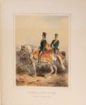 PETTENKOFEN (August von) & Josef Anton STRASSGSCHWANDTNER. Die k. k. Osterreich'sche Armée nach der neuesten Adjustirung. Vienne, Alois Leykum, [1853-1854]. In‑plano, 39 x 47 cm, 35pl. (sur 36), reliure de l'époque en demi-chagrin noir, dos à nerfs. Édition originale. Album rare entièrement lithographié comprenant 35 planches (23,5 x 31,5 cm), sur 36. Le feuillet de titre et la planche n° 17 manquent. Ces belles planches, aquarellées et gommées à l'époque, représentent les uniformes des différents corps de l'armée impériale autrichienne sous le règne de François-Joseph Ier, à qui l'ouvrage est dédié. Les peintres viennois Pettenkofen (1822-1889) et Strassgschwandtner (1826-1881) laissèrent de nombreuses scènes militaires et d'histoire. Bel exemplaire. Quelques rousseurs marginales. Lipperheide 2238.- Colas 2337.