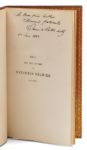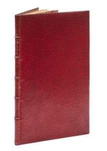 ROTHSCHILD (James de). Essai sur les satires de Mathurin Régnier, 1573-1613. Paris, Auguste Aubry, 1863. In‑8, 12,5 x 20,5 cm, 32pp., reliure janséniste de l'époque, signée R. Petit, en maroquin rouge, dos à nerfs, dentelle intérieure dorée, tranches dorées. Édition originale du texte lu à la conférence du rez-de-chaussée le 7 mai 1863 par James de Rothschild (1844-1881), avocat de la banque familiale, grand bibliophile et mécène. Rare plaquette, parfaitement imprimée, tirée à 200 exemplaires sur vergé. Très bel exemplaire (n° 95), parfaitement établi. Envoi autographe signé de l'auteur à son frère Arthur de Rothschild (1851-1903), sur le faux-titre.