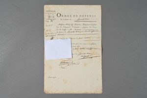 Georges-Louis Leclerc, comte de BUFFON (1707-1788), naturaliste. Pièce en partie imprimée, signée. 1 p. in-folio. Paris, 8 octobre 1779. Quelques rousseurs. Ordre de paiement aux banquiers Sellouf & Perrouteau d'une somme de 6000 livres à M. Lamant « pour remboursement d'avance ». Document également signé par 4 autres membres de la Compagnie d'Épurement de charbon de terre.