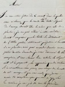 Frédéric CAILLIAUD (1787-1869), explorateur et naturaliste ; il fit plusieurs expéditions fructueuses dans la haute vallée du Nil, jusqu'à Abou-Simbel et les ruines de Méroé, devenant le premier européen à pénétrer cette région. A son retour en France, il se tourne vers l'histoire naturelle, et plus particulièrement des mollusques. Lettre autographe signée aux librairies Treuttel & Wurtz. 1 p. ¼ in-4. 8 juillet 1826. Adresse au dos avec marques postales. Sur la vente de son ouvrage Voyage à Méroé, au Fleuve Blanc au-delà de Fazoql, dans le midi du royaume de Sennâr, à Syouah, et dans cinq autres oasis, fait dans les années 1819, 1820, 1821 et 1822, en 4 volumes de texte et 2 d'atlas (1826-1827). « J'ai reçu votre lettre du 6 courant dans laquelle vous m'observez que la remise sur le texte séparé de l'ouvrage devrait être la même que celle des planches ; je ne puis adhérer à cette condition, devant compasser que le texte se détachant de l'atlas portera certainement préjudice à la vente de ces planches ; mais pour accorder du moins une partie de votre demande, je vous donnerai le 13ème exemplaire, et nous sommes bien entendu le 15 pour cent, et les payements plus rapprochés de de coutume. Si à ces conditions vous pouvez vous charger de la vente de cet ouvrage, et que vous vouliez que je vous en envoie 50 exemplaires pour que vous en ayez sous la main, je vous prie de me le faire dire […] ».