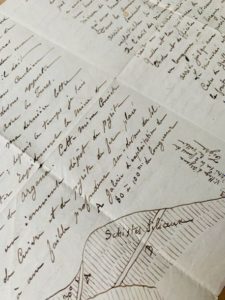 Alphonse CHOSSON (Romans 1838-1907), géologue, ingénieur en chef des mines. Lettre autographe signée, 4 pp. in-8. « Malatia » [Malatya, Kurdistan turc], 30 décembre 1865. Lettre écrite durant sa mission géologique et minéralogique en Turquie pour le gouvernement ottoman (de 1863 à 1866), illustrée de croquis. « […] Depuis ce temps, je suis allé visiter rapidement la mine de cuivre de Argana. Cette mine consiste en un immense dépôt de pyrite de cuivre et de pyrite de fer, placé à une faible profondeur au-dessous du sol [il illustre son propos d'une coupe géologique] […] Cette galerie n'ayant pas été entretenue s'est éboulée et l'eau a envahi les chantiers d'exploitation sur une hauteur de 15 à 20 m. au-dessus du niveau de cette galerie […]. Le minerai est grillé à fond dans des cases de grillage et ensuite soumis à fonte pour cuivre noir dans des fours de 3m de hauteur environ. On ne fait pas de fonte pour matte. Il en résulte que le cuivre noir est très mauvais et contient une très forte proportion de fer qui rend l'affinage très difficile. Le combustible est du bois très humide. Le charbon est totalement inconnu ici […]. D'Argana je suis venu à Malatia pour constater la présence d'une prétendue nouvelle mine trouvée par le Pacha de Kharpont. Mensonge ! Cette mine est ancienne et a été exploitée il y a environ 25 ans par Afens Pacha ; elle est connue sous le nom de mine de Tépé-Khan à 8h de Malatia. On n'y a travaillé que 8 à 10 mois avec le secours de la force armée ; les troupes s'étant retirées, les Kurdes ont détruit tout ce qui avait été fait et les mineurs ont été obligés de se retirer […]. Le voisinage est composé de villages Kurdes qui ne reconnaissent pas l'autorité du gouvernement. On m'a apporté hier un fossile trouvé dans le calcaire des environs de Malatia ; il ressemble à un nautile [il illustre son propos d'un croquis]. Je compte me rendre sur les lieux pour en trouver d'autres et mieux constater l'espèce […] ».