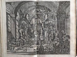 Aen Konchy, Tartarsche Keizer van Sina en Oost-Tartarye [...]. Beneffens een Beschryving van geheel Sina. Amsterdam, Jacob van Meurs, 1670. 2 delen in 3 stukken gebonden in 1 vol. in-f° : tekst niet gecollat., 38 (op 39) platen (gegrav. titel en kaart ontbreken, herkomststempels op titel, water- en schimmelvlekken doorheen het ganse volume). Eigentijdse band : donker kalfsleder, rug met ribben en rood titelschild (bovenste scharnier gedeeltelijk gesplit, schutbladen vernieuwd).