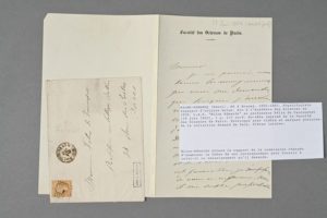 Henri MILNE-EDWARDS (1800-1885), zoologiste. Lettre autographe signée au professeur Félix de Fauconpret. 2 pp. in-8, en-tête de la Faculté des sciences de Paris. Paris, 18 juillet 1863. Enveloppe conservée. Cachet de la collection Armand Silvestre de Sacy (1867-1946). « Je ne pourrai vous donner les renseignements que vous me demandez que lorsque j'aurai reçu le rapport de la commission qui sera chargée d'examiner votre thèse. Dès que cette pièce sera entre mes mains je la renverrai à la commission et si l'avis de celle-ci est favorable, je m'empresserai de vous en informer, mais il me semble peu probable que vous puissiez avoir ensuite le temps nécessaire pour l'impression de ce travail avant l'époque où la Faculté entrera en vacances ».