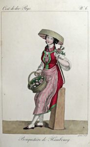 (Europe & Costumes) - Costumes des femmes de Hambourg, du Tyrol, de la Hollande, de la Suisse, de la Franconie, de l'Espagne, du Royaume de Naples, etc.; Dessinés, pour la plupart, par M. Lanté, gravés par M. Gatine, et coloriés. Avec une...
