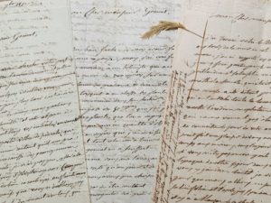 Pierre-Casimir de POUZOLS (Manduel, Gard 1786-1858), botaniste, auteur d'une Flore du département du Gard ou description des plantes qui croissent naturellement dans ce département (Montpellier, 1856-1857, 4 parties en 2 vol. in-8, publication interrompue par le mort de l'auteur). 3 lettres autographes signées à l'abbé Gonnet, 5 pp. in-4 et in-8. Manduel, 1847-1852. Adresses au dos avec marques postales. Une lettre est accompagnée d'un échantillon de plante. Correspondance toute consacrée à la botanique. Il a été très occupé à envoyer 300 espèces à Candolle qui lui a envoyé en retour le 8e volume du Prodrome, volume qui lui a servi à classer les plantes de son herbier. Il dresse une liste de plantes remises à l'abbé Miche. « Les 5 premiers volumes de la Flore française de Mr Grenier nous arriverons au mois de mai. J'ai reçu un prospectus avec un spécimen qui promet beaucoup pour la bonté de cette flore. Je désirerais bien un échantillon de votre Inula iquarrosa de Gay si vous en avez deux, coupez m'en une ainsi que votre Garopholin jussioi […]. Vous pouvez ajouter à la description de votre auphortia papillosa qu'il sort d'une souche ligneux plusieurs rameaux droits ou étoilés et que les fruits sont couverts de papilles larges et découpées en crêtes […] ». Une des lettres est accompagnée d'une graminée qu'il demande de déterminer.