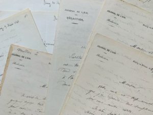 RÉGIONALISME (dont fonds d'un ancien libraire en documents historiques) AIN. Correspondance adressée à Eugène de Jacob de la Cottière (1828-1885) - Étienne MILLIET, rédacteur au Journal de l'Ain et membre de la Société d'Émulation de l'Ain (11 lettres à son « cher compatriote » ; Bourg 1862-1871, en-têtes du Journal de l'Ain, 28 pp. in-8. Très intéressante correspondance sur le Journal de l'Ain, le Nobiliaire de Bresse, etc.) - Alexandre PRÉVET, typographe à Bourg (5 lettres sur ses recherches bibliographiques et le commerce d'ouvrages rares ; Bourg, 1836).