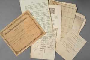 AIN. Une douzaine de documents divers, XVIIIe-XIXe. - [Viticulture]. Rare diplôme décerné par le directeur de l'École de Greffage de la Société Départementale de Viticulture de l'Ain, attestant de l'aptitude à greffer la vigne (1890). - Intéressante lettre de 2 citoyens de Replonges (brumaire an 4) sur la réquisition de l'église de Bagé pour y installer les locaux de la section de Bagé, avec résultat des élections des membres. - Petit cahier manuscrit concernant la publication des décrets révolutionnaires à Ceyzérieu. 32 pp. in-4. An 5 - an 6. - Factum imprimé concernant le procès entre les mare et habitants de Nievroz contre ceux de Jons (1745) - Lettres de Richalet (Pont-de-Vaux, 1750) et Darles (président de l'administration centrale de l'Ain) - Feuille de route d'un militaire au service de la marine natif de Divonne (Toulon à Divonne, 1849) + certificat de bonne conduite (1849). Reçu pour un abonnement au Journal d'agriculture, lettres et arts du département de l'Ain (1840). Journal de l'Ain n°69 du 12 juin 1838. Lettres patentes du Roi concernant « la confection & vérification des rôles de supplément sur les ci-devant privilégiés, pour les six derniers mois de 1789 tant dans le département de l'Ain que dans les autres […] » (mouillure)