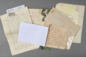 BOUCHES-DU-RHÔNE. 6 documents XVe-XVIIIe. - Acte en latin, sur papier, daté d'Aix le 12 janvier 1496. Concerne Vincent Bompar conseiller du Roi à la chambre des comptes d'Aix. Sceau sous papier. - Mandement à comparaitre des consuls de Marseille (Aix, 1597, signatures) - Contrat de mariage d'un important négociant marseillais avec une dote de 24.000 livres (grands rabans de soie), 1759. - Contestation pour le syndic des marchands fripiers contre les chiffoniers (Marseille, 1732) - Procédure concernant un créancier de Saint-Savournin (1718, 26 pp. in-folio) - Parchemin de 1572 au sujet d'une requête présentée le sieur de Castelane sieur de Salerne (restes d'un grand sceau).