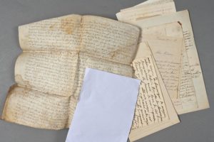 CORRÈZE. Une vingtaine de documents XVIe-XIXe. - Parchemin, 37 x 30 cm, daté du 15 avril 1598. Vente d'un lopin de terre du seigneur de Plas (document signé par Claude de Plas) sis au village de Curemonte en Limousin. - [Abbaye de Bonnesaigne]. Pièce dressée et signée par Catherine de Beauverger de Mongon abbesse de l'abbaye royale de Bonnesaigne. Quittance pour un don à l'abbaye. 1709. - Affiche des commissaires du gouvernement provisoire dans le département de la Corrèze. Tulle, 6 mars 1848. - Lettre de Delmas au baron de Mirambel (Ussel, 1747), au sujet de la possession d'une terre et de son moulin. - Note écrite sur un bel en-tête gaufré du petit séminaire de Servière (XIXe). - Quittance de la Société de secours mutuels de Brive (1886) - 15 lettres autographes signées « A. Tassain, née de Lasalle » [Adèle Fortunée de La Salle, épouse de Nicolas Tassain], à son amie Amélie. Brive, 1845-1852. 34 pp. in-8. Jolie correspondance amicale. Échanges d'invitations avec la bonne société brivoise, nouvelles familiales, événements du temps. 20 juin 1849 : « Nous l'avons encore échappé belle avec l'émeute, si elle avait triomphé où en serions-nous ?... Est-ce vivre que d'être comme nous sommes depuis dix-huit mois ? C'est trop d'une révolution et du choléra […] ». 8 oct. 1850. « Nous sommes bien ici, le pays est joli, la vie y est bon marché […]. Les femmes sont bien élevées, quelques-unes sont spirituelles, elles sont élégantes, mais on ne se voit plus depuis la dernière révolution […]. Nous n'avons pas encore d'huîtres. On n'a du poisson de mer que 5 mois de l'année ici, et peu même de poissons d'eau douce, la Corrèze est désempoissonnée pour avoir abusé. Il y a force châtaignes, c'est la nourriture des pauvres […] ». On joint un certificat établi par Pradel de Lamase, commandant une compagnie d'artillerie (Uzerche, 1814).