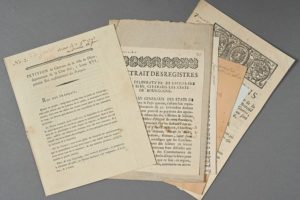 CÔTE D'OR. 7 imprimés. « Pétition de citoyens de la ville de Dijon […] à Louis XVI, premier Roi constitutionnel des Français » (Dijon, 23 janvier 1792, 3 pp. in-4). « Extrait des registres des délibérations de la chambre des élus généraux des États de Bourgogne » (4 janvier 1694, 2 pp. in-8). Affiche de la préfecture de la Côte d'Or du 27 juin 1814 « Arrêt du Conseil d'État du Roi qui règle le mode d'admission des bons ou récépissés de réquisition en paiement des Contributions extraordinaires de 1813 & 1814 ». Autre affiche (plus petite) : « Extrait des registres des délibérations de la Chambre du Conseil & Police de la ville & commune de Dijon du mardi 2 mai 1741 ». « Extrait des procès-verbaux des séances du Directoire du département de la Côte d'Or, séance du 31 janvier 1791 » (3 pp. in-8). « Observations faites par Messieurs les élus généraux de la province de Bourgogne, à monsieur de Breteuil […] » du 27 avril 1726 (4 pp. in-4). « Les Soucis de Jeanne d'Arc, romance chantée au spectacle de Dijon, entre les deux pièces, le 17 avril 1814 » (3 pp. in-8, imprimé à Auxerre).