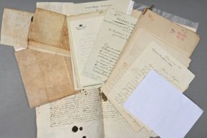 JURA. Une trentaine de documents, XVIe-XXe. - Parchemins XVIe-XVIIe : appel au parlement de Dôle (1514), acte de mariage à Montmoret (1528), vente d'une pièce de terre à Port-Lesney (1585), promesse de paiement à Saint-André (1598), achat de 2 pièces de vigne à Dôle (1627). - Dossier concernant la famille de Falletans : extrait du journal de M. de Falletans (1827-1848, 30 pp. in-folio) et 13 lettres du curé de Falletans à M. Thierry de Falletans (1846-1850, 39 pp. in-4) - Lettre signée par Dubois-Crancé et Gauthier des Orcières (août 1793) pour faire arrêt un citoyen de Lons-le-Saunier - 5 lettres de la famille Laroche-Champvans (sur papiers à en-tête du château de Maisod à Moyrans), XIXe. - Affichette annonçant la vente du château de Vaudrey (1885) + qq. autres documents.