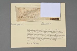 LOT. Louis de VENTADOUR (vers 1434-1500), seigneur des Granges, chambellan du Roi. Pièce signée sur vélin. 7,5 x 22 cm. « Rochemadour » [Rocamadour], 3 février 1483. « Nous Loys de Vantadour chevalier seigneur de Granges et de Charlus Champaignac, conseiller et chambellan du Roy nreSr [nostre seigneur] et cappitaine des places et Dome et de Brageyrac » certifie avoir reçu du trésorier de la sénéchaussée de Périgord la somme de 35 livres tournois pour « à cause de noz gaiges desdictes cappitaineries ». Lot : voir également n°226 et 833