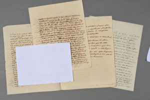 LOZÈRE. Arsène Valette DES HERMAUX (Marvejols 1795-1868), magistrat et homme politique légitimiste, ami de Lamartine. 2 lettres autographes signées à un ami. 13 pp. in-4. Mende, 1823-1825. Longues et intéressantes lettres, écrites au tout début de sa carrière, alors qu'il succède à son père comme procureur du Roi au tribunal de première instance de Mende, et dans lesquelles il dit son attachement à la Lozère, son pays natal. Après sa nomination, il a trouvé la commune de Mende dans une grande désolation. « Un jour de dimanche la gendarmerie qui voulait arrêter quelques masques éprouva une rébellion sérieuse et un des gendarmes fut grièvement blessé d'un coup de pierre ». Il raconte l'arrestation, le procès, etc. « […] Me voilà confiné dans la Lozère, je ne m'en plains pas, je ne trouverai nulle part ma vie plus douce que celle que je mène dans ce pays […]. À Mende, mon cher ami, l'ennui ne peut pas m'atteindre, je passe tout ce que le travail me laisse de loisirs auprès d'une dame d'une figure charmante et dont la douceur de caractère est on ne peut plus attachante […]. Mon zèle pour le ministère public en est un peu ralenti si vous voulez ; cependant je tiens toujours le travail du parquet au courant avec gratitude. Vous sentez que je suis loin de former des projets d'ambition, je ne me sens nul désir de devenir avocat général, il y a donc apparence que je resterai ici longtemps ; quand j'aurai atteint mes quarante ans, si le démon de l'avancement et de la politique me tourmente, je pourrai aspirer à la députation ; j'aurai pour cela d'assez belles chances dans ce département […]. Les gens du pays ne sont pas très méchants et depuis deux ans que j'occupe les fonctions de procureur du roi, notre Cour d'assises n'a eu qu'une seule condamnation capitale à prononcer, encore le condamné était-il d'un département voisin […] ». Lozère : voir également n° 88
