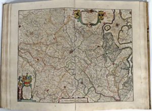 1647. In-f° : titre gravé, 40 cartes (texte et cartes brunis, déchir. sans manque et renforcée à la marge infér. de la carte du Hainaut, plis). Rel. moderne avec réemploi de plats anciens : plein vélin, dos lisse, plats ornés d'un large encadrement avec grand fleuron central dorés (faibles taches aux plats).