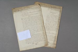 PARIS. Manuscrit de 4 pp. in-folio, vers 1791-1792. Bords salis. Aménagement place Saint-Sulpice. « Clauses et conditions du bail à passer à la municipalité d'un terrain place St Sulpice, pour la construction d'un corps de garde pour le bataillon des Carmes ». Il est joint le manuscrit d'un accord passé entre Jules Cronier « entrepreneur des Jardins du Roi à Marly » et Jean-Pierre Petit « pensionnaire du Roi »