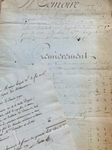 PARIS. 3 manuscrits, dont l'un signé par l'architecte Denis ANTOINE (1733-1801) Aménagement d'une maison rue de la Vieille Draperie (l'une des plus anciennes rue de l'île de la Cité, aujourd'hui disparue). « Mémoire d'ouvrage de charpente faite et fournie en une maison size rue de la Vieille Draprie [sic] appartenant à monsieur Hecquet, lesdits ouvrages faits aux mois de mai et juin 1791 sous les ordres et conduitte de monsieur Antoine architecte juré expert de batiment et par la veuve Maheu maîtresse charpentière à Paris rue Notre Dame des Champs » (4 pp. in-folio) ; « Mémoire en dépense d'ouvrages de charpentes faites pour étrésillonnements dans une maison size rue de la vieille draperie […] » (7 pp. ½ in-folio, 1792) ; « Honoraires dus par Monsieur Hecquet marchand de fer au Sr Antoine architecte expert des bâtiments » (1 p. in-4, 1791).