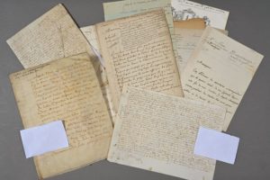 SOMME. Une vingtaine de documents divers, XVIe-XIXe. - 3 parchemins : vente d'une terre à Lanchères (1570), contrat de mariage à Montdidier (1577), vente d'une maison avec ses terres à Saint-Jean-des-Prés (1607). - Louis III de Chauvelin, intendant de Picardie. Lettre signée, 3 pp. in-4. Amiens, 30 janvier 1685. Au sujet du paiement des « douze pilottes de Calais qui sont obligés d'aller au-devant des vaisseaux » - Louis-Joseph Camus, ex-curé de Sailly arrondissement de Péronne et futur archevêque d'Aix-la-Chapelle. 2 lettres signées (au premier Consul Bonaparte et au Sénat conservateur), au sujet des arrérages dus aux pensionnaires ecclésiastiques de l'arrondissement de Péronne. - Dossier sur le chevalier de Belloy, gentilhomme de Picardie, prisonnier au château de Ham, devant s'embarquer pour la Désirade. 5 lettres formant 15 pp. in-4 et in-folio. Amiens, Paris, Versailles et prison de l'abbaye [Ham], 1743-1766. - lettres diverses : chevalier de Waran (citadelle d'Amiens, 1742), A. Labour, antiquaire et maire de Doullens (2 longues lettres érudites, Doullens, 1853). Lettre du secrétaire perpétuel de la Société des Antiquaires de Picardie (1868). Chanoine Prévost (belle lettre en partie en vers. Amiens, 1742), etc.